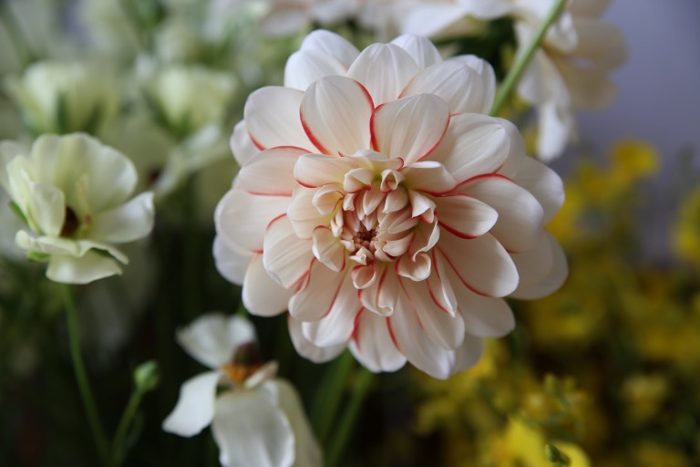 花を提供した組織は「Flowers from the Farm」という、切り花生産者たちをサポートする小さな非営利団体で、地球にやさしい栽培を続けている生産者とのつながりが深く、デザイナーのConnolly氏により選ばれました。この団体に所属する80の生産者より集められた花々は120種類以上にもなり、限られた時間での水揚げをしての出荷は大変な作業だったと思います。