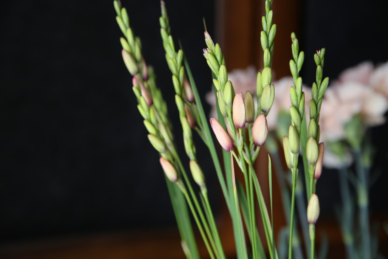 一見見落としてしまいそうなほどスラリと細長い植物です。イギシアは南アフリカケープ地方原産の球根植物です。現地では約40種類くらいの自生種があるとの事です。球根植物は往々にして切り花となっても長く持ってくれます。この花も一週間としましたが、気温次第で10日は美しい状態を保てます。今回入荷の物は今までで一番美しく、しかもハイクオリティです。